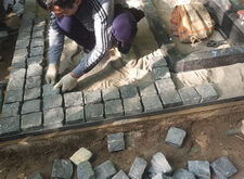 Укладка гранитной брусчатки,