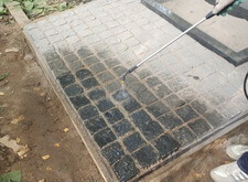 Засыпаем брусчатку пескобетоном, снимаем лишний слой, замываем.